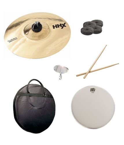 Pack includes Sabian 10-Inch HHX Evolution Splash Brilliant Finish, Cymbal Bag, Snare Head, Drumsticks, Drum Key, and Cymbal Felts.